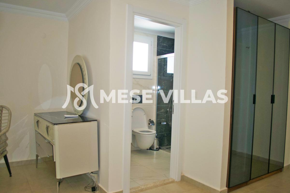 5 yıldızlı bir otel’den beklediğiniz konforu sunan, lüks ve özenle donatılmış, yüksek kaliteyi ve modern kolaylıkları yaşayabileceğiniz mükemmel bir villa. Klimalı, geniş ve büyüleyici bu müstakil tripleks villa, Babadağ ve Mendos dağlarının eşsiz manzaralarına sahiptir. Villa, havuz’a doğru açılan, modern ve geniş açık plan salon / yemek yeme alanı, full ekipmanlı mutfak, üç adet yatak odası, üç adet banyo, dinlenmek ve güneşlenmek için etrafında geniş alanı bulunan özel yüzme havuzu, geniş bahçe alanı ve özel otopark’dan oluşmaktadır. Dünyaca ünlü Ölüdeniz plajı özel araç ile 5 dakikalık sürüş mesafesindedir. Birçok mağaza, restoran, bar ve gece eğlenceleri’nin yer aldığı Hisarönü köyü ise 10 dakikalık yürüyüş mesafesinde yer almaktadır. Villa maksimum 6 kişi’ye kadar konaklama yaptırabilmektedir.